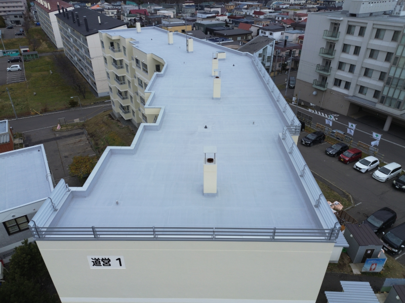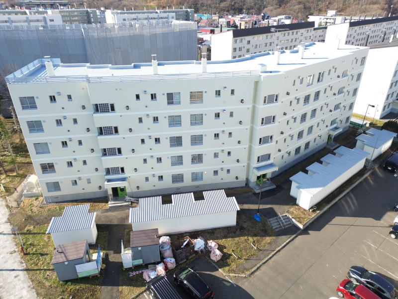 小樽市道営住宅改善工事(新光団地道営1号棟、集会所、5・6号棟受水槽室) 工事名小樽市道営住宅改善工事(新光団地道営1号棟、集会所、5・6号棟受水槽室) 竣 工令和 8年 2月 所在地小樽市 その他の写真 外壁等改修前 外壁等改修前 屋上防水改修後 屋上防水改修後 屋上防水改修前 屋上防水改修前